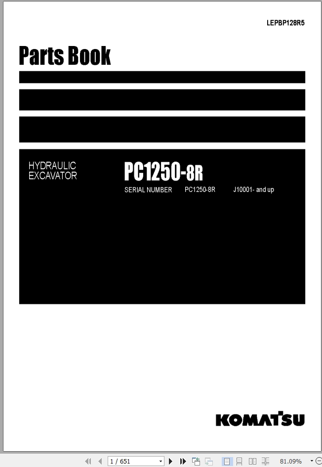 Komatsu PC1250-8R Part Book LEPBP128R5