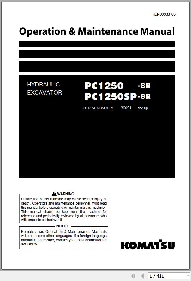 Komatsu PC1250SP-8R PC1250SP-8R Operation & Maintenance Manual TEN00933-06