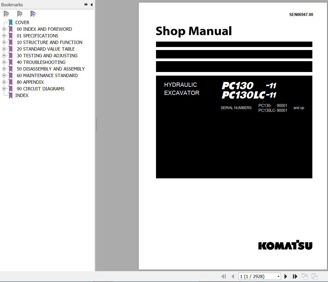 Komatsu PC130-11 PC130LC-11 Shop Manual SEN06947-00