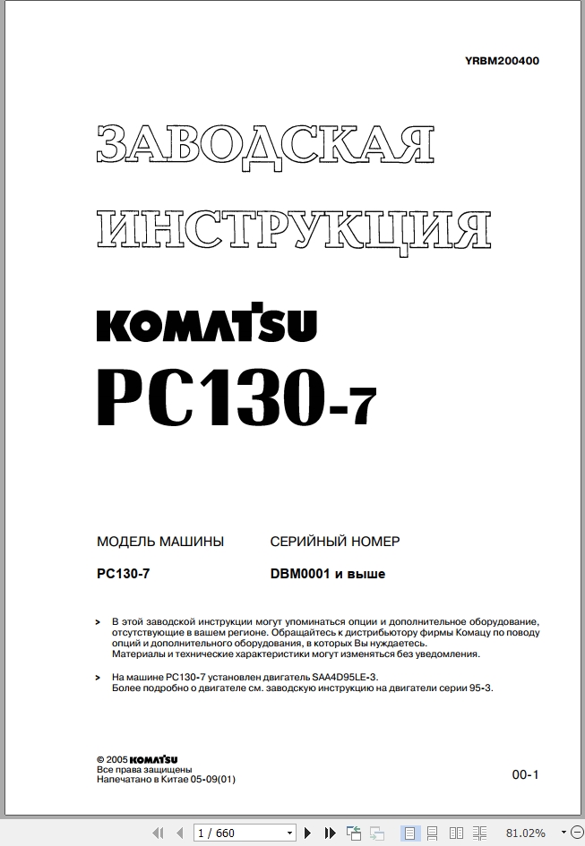 Komatsu PC130-7 Shop Manual YRBM200400