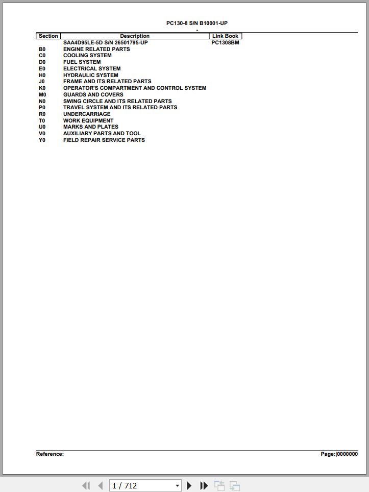 Komatsu PC130-8 B10001 Up Spare Parts Catalog