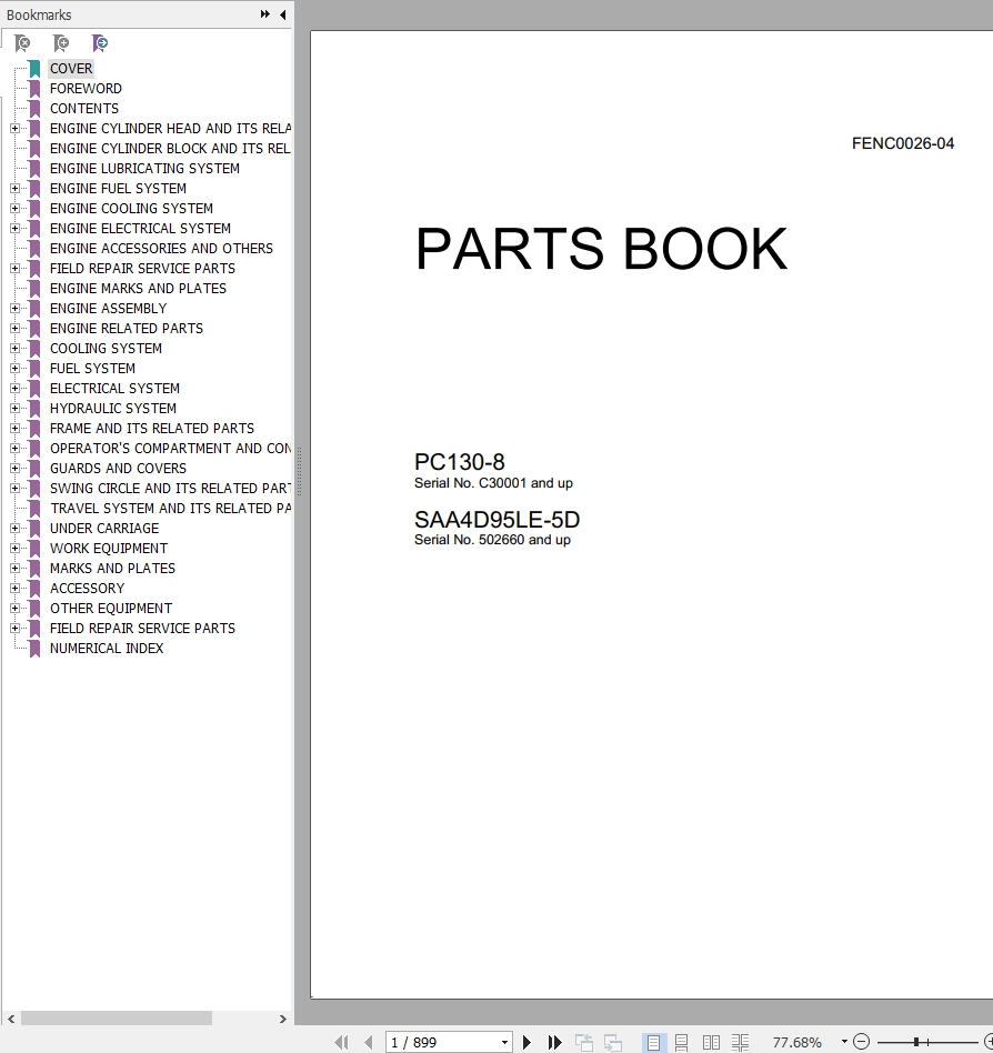 The Bookmarks of Komatsu PC130-8 Crawler Excavators Part Book: