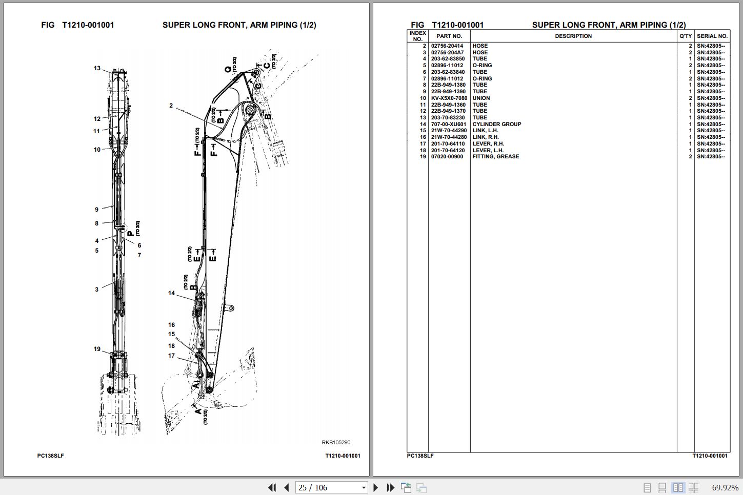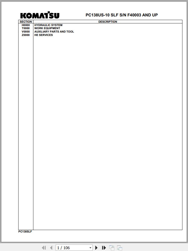Komatsu PC138US-10 SLF F40003 And Up Spare Parts Catalog