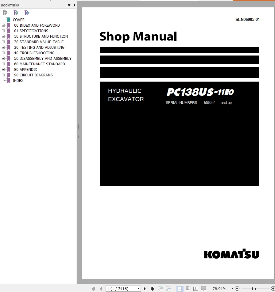 The Bookmarks of Komatsu PC138US-11E0 Hydraulic Excavator Shop Manual: