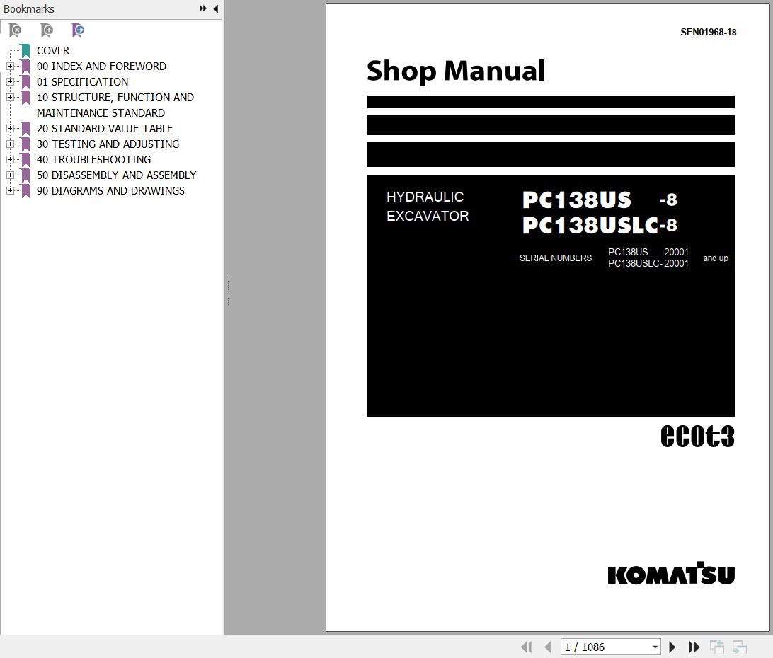 The Bookmarks of Komatsu PC138US-8 PC138USLC-8 Hydraulic Excavator Shop Manual: