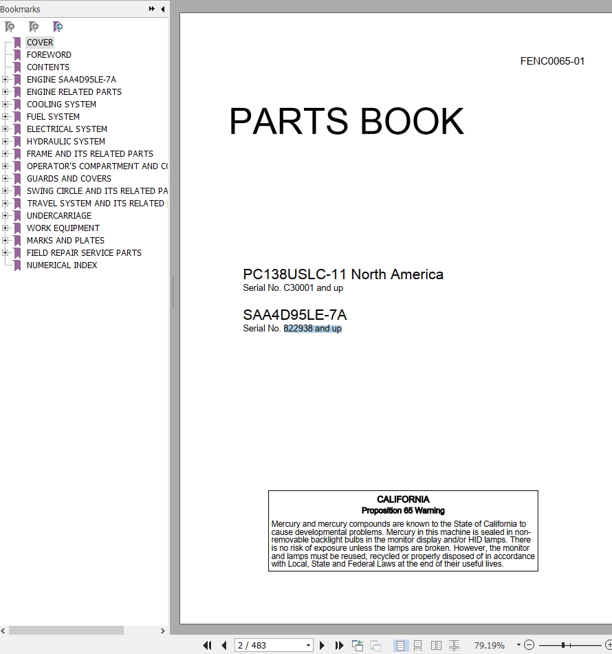 Komatsu PC138USLC-11 Part Book FENC0065-01