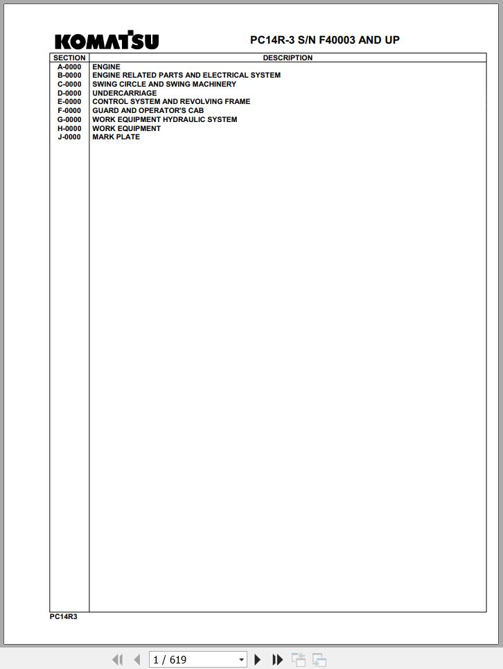 Komatsu PC14R-3 F40003 And Up Spare Parts Catalog