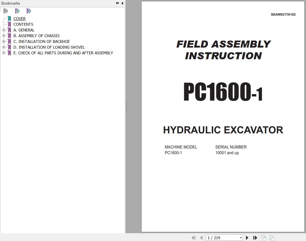 Komatsu PC1600-1 Field Assembly Manual SEAW021TA102