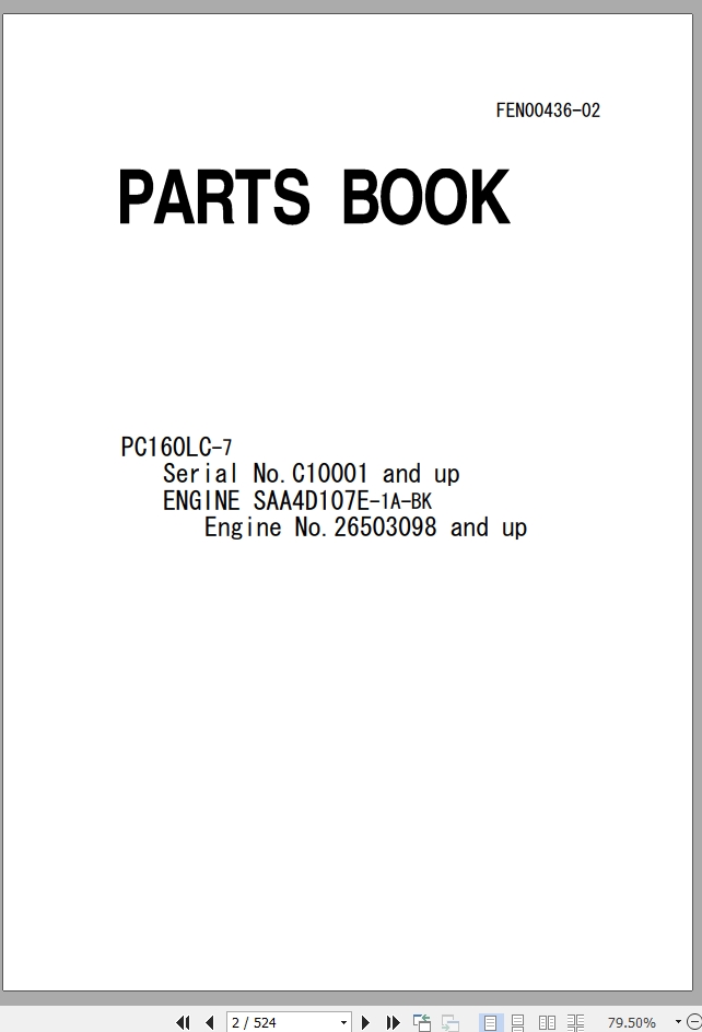 Komatsu PC160LC-7 Part Book FEN00436-02