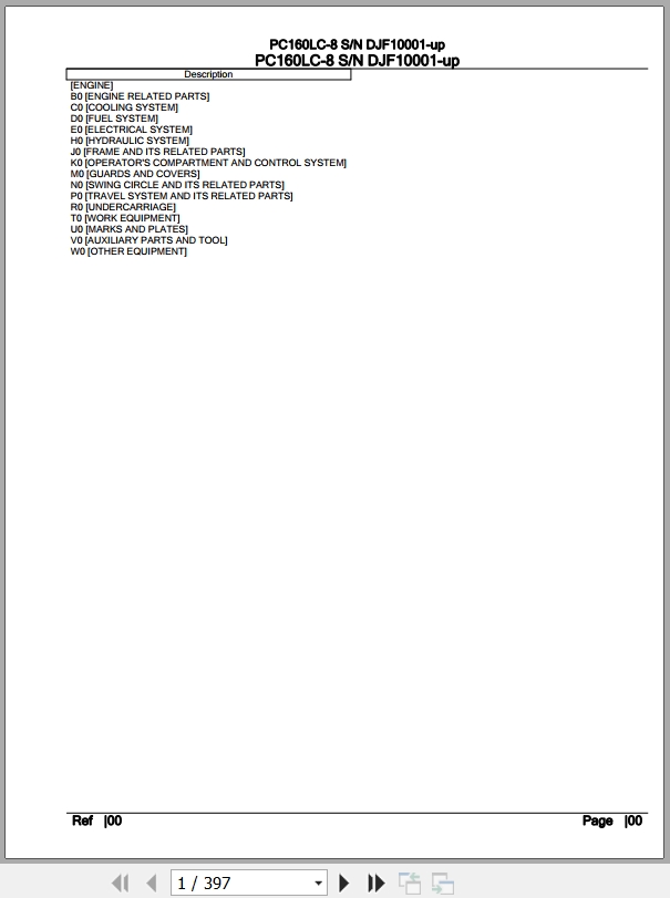 The Bookmarks of Komatsu PC160LC-8 DJF10001 Up Spare Parts Catalog: