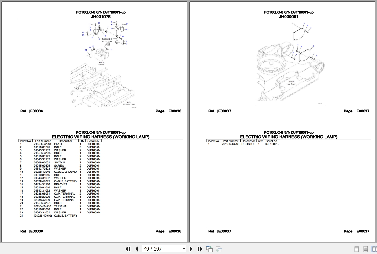 Komatsu PC160LC-8 DJF10001 Up Spare Parts Catalog