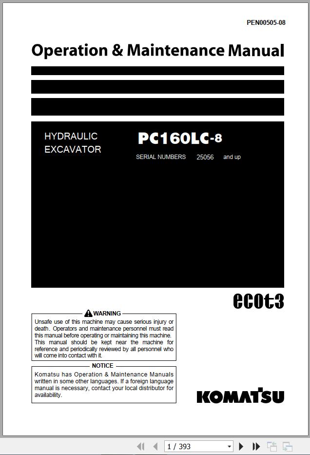 Komatsu PC160LC-8 Operation & Maintenance Manual PEN00505-08