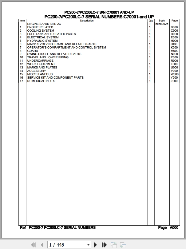 The Bookmarks of Komatsu PC200-7 PC200LC-7 C70001 And Up Spare Parts Catalog: