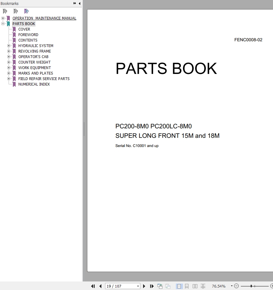 Komatsu PC200-8M0 PC200LC-8M0 Part Book FENC0008-02