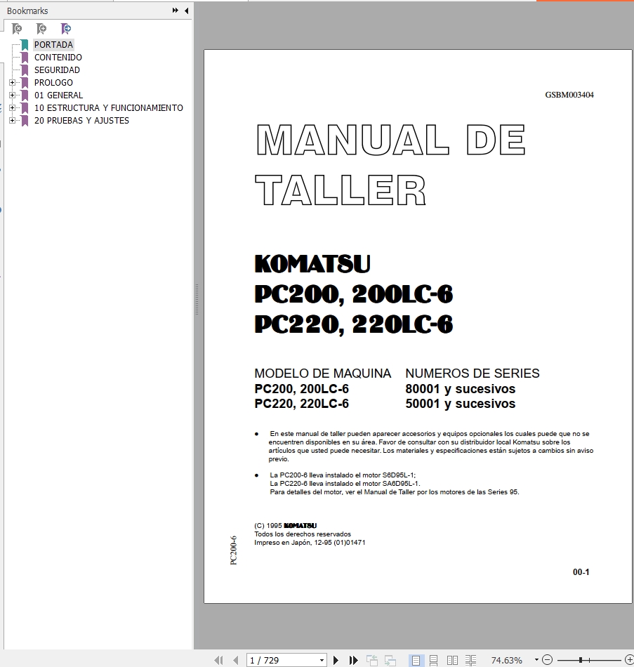 The Bookmarks of Komatsu PC200 PC200LC-6 PC220 PC220LC-6 Excavadora Hidráulicas Manual de Taller: