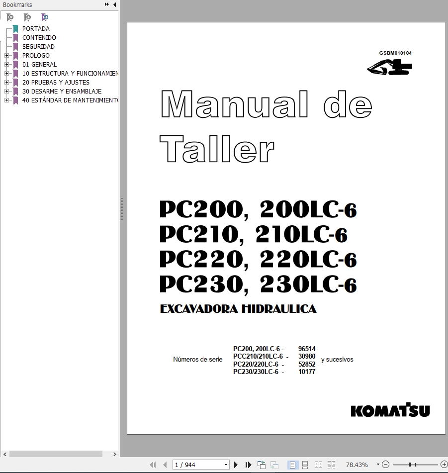 The Bookmarks of Komatsu PC200 PC210 PC220 PC230 Excavadora Hidráulicas Manual de Taller: