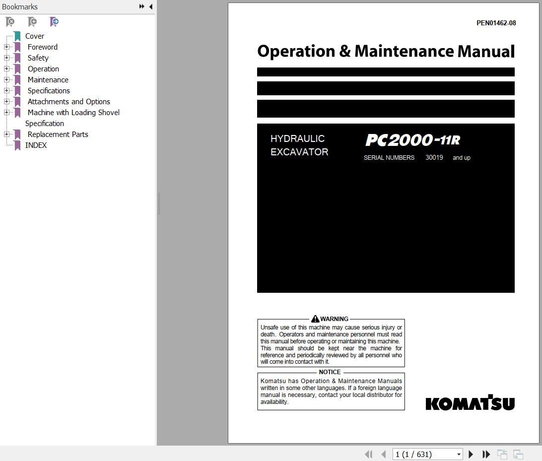Komatsu PC2000-11R Operation & Maintenance Manual PEN01462-08