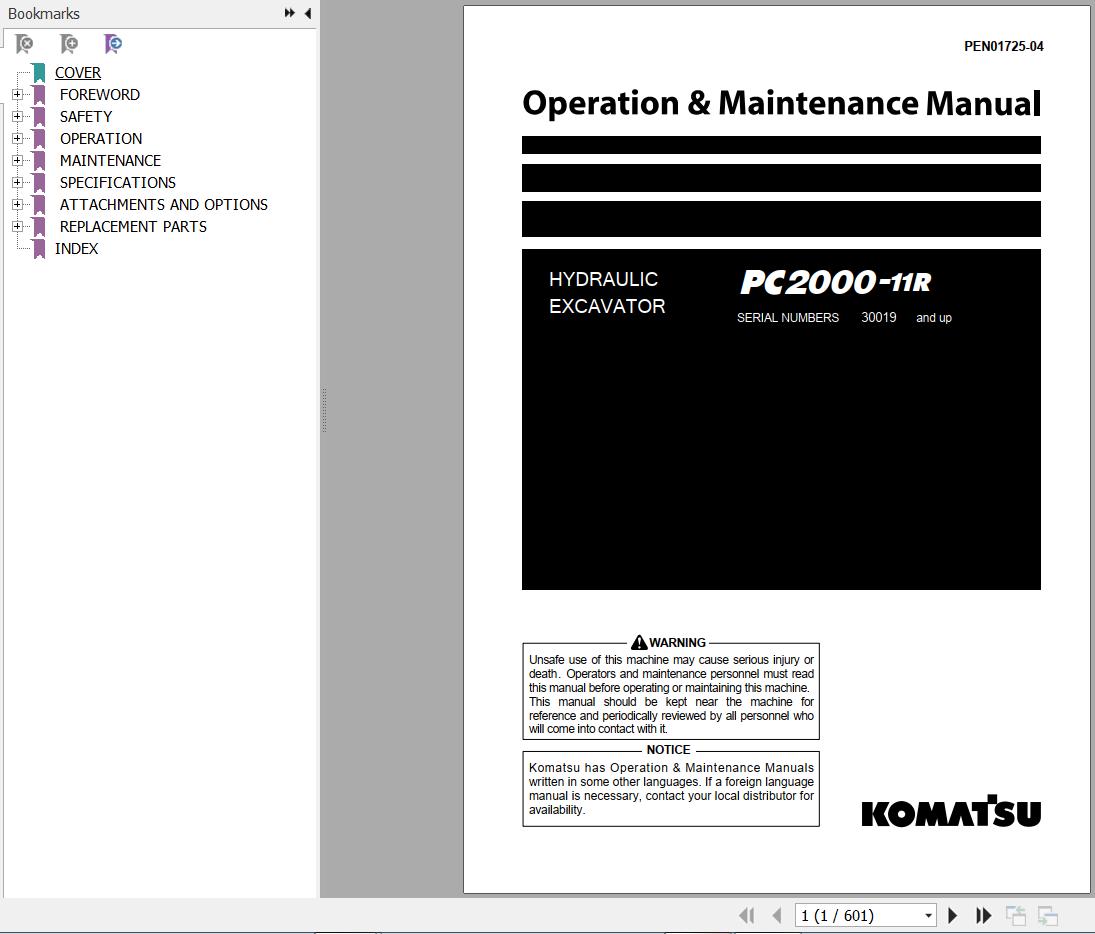 Komatsu PC2000-11R Operation & Maintenance Manual PEN01725-04