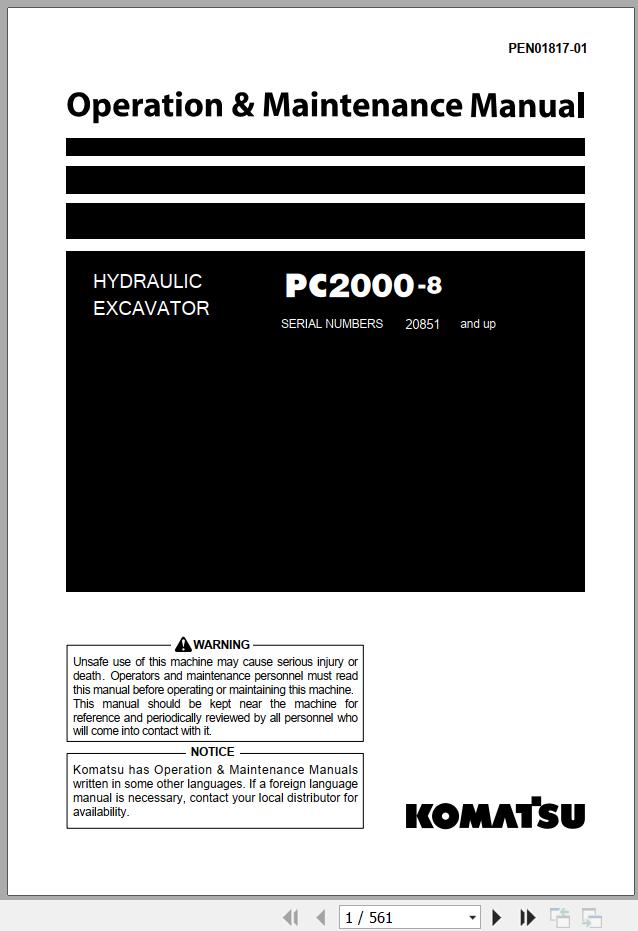 Komatsu PC2000-8 Operation & Maintenance Manual PEN01817-01