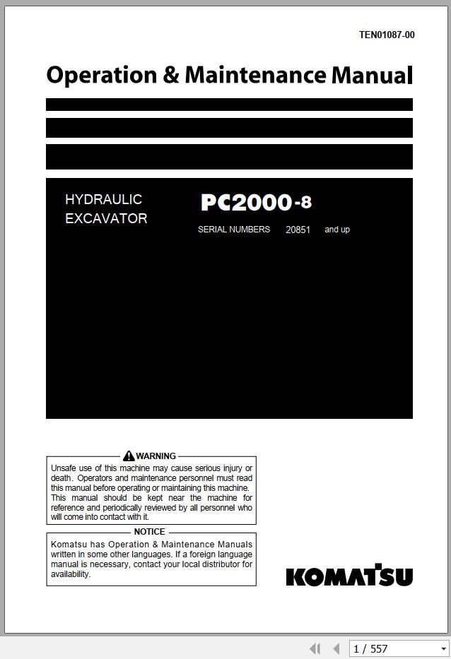 Komatsu PC2000-8 Operation & Maintenance Manual TEN01087-00