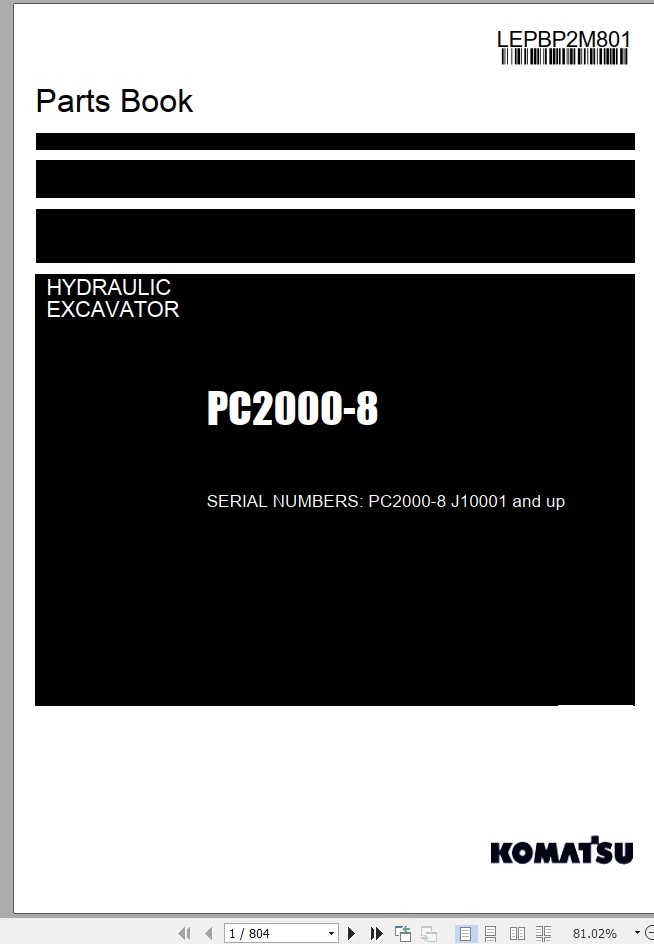 Komatsu PC2000-8 Part Book LEPBP2M801