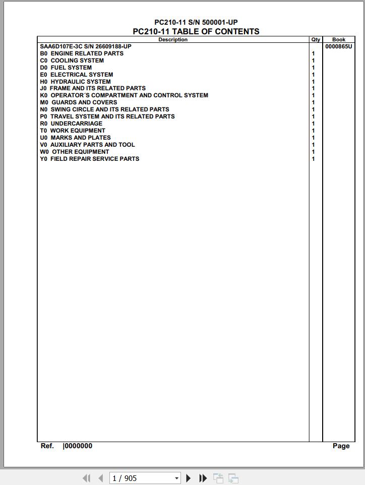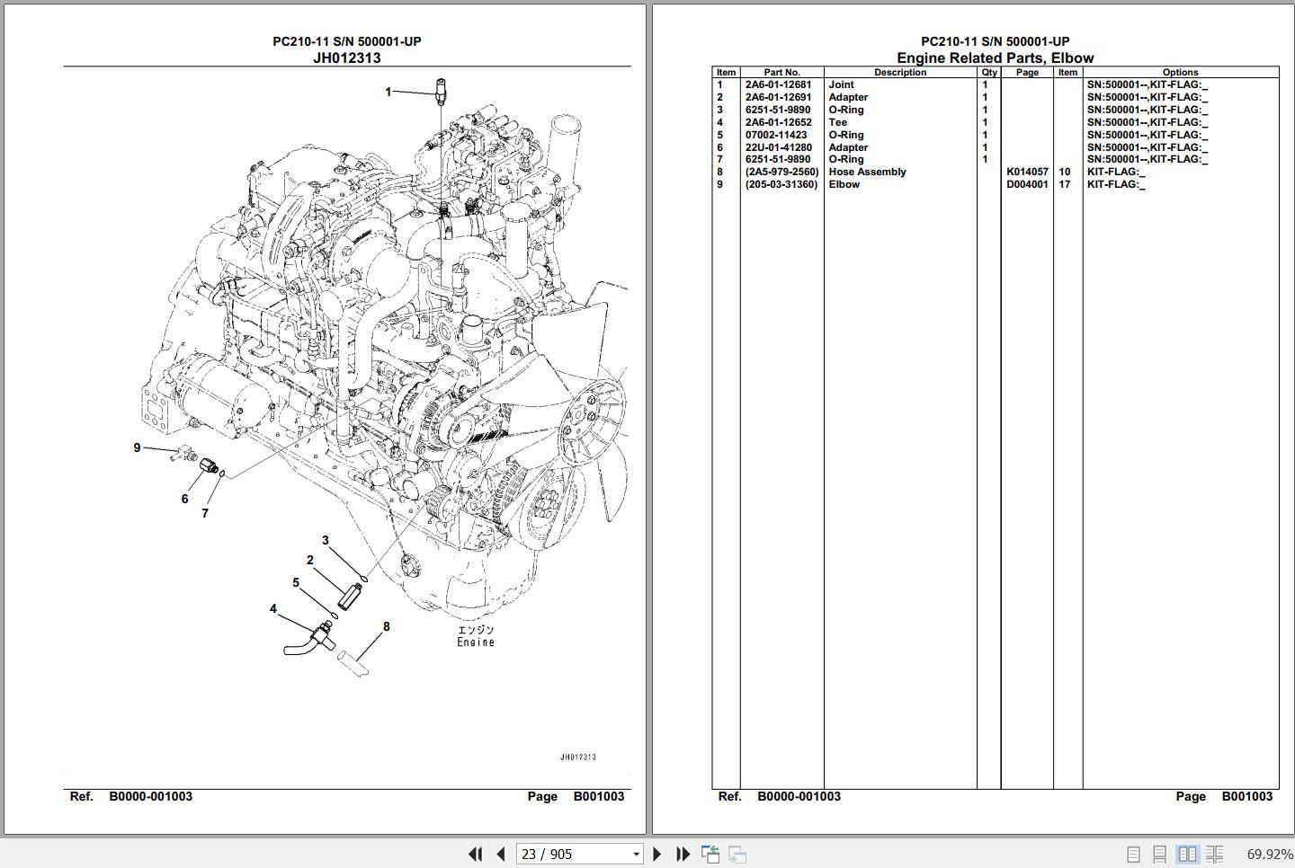 Komatsu PC210-11 500001 Up Spare Parts Catalog