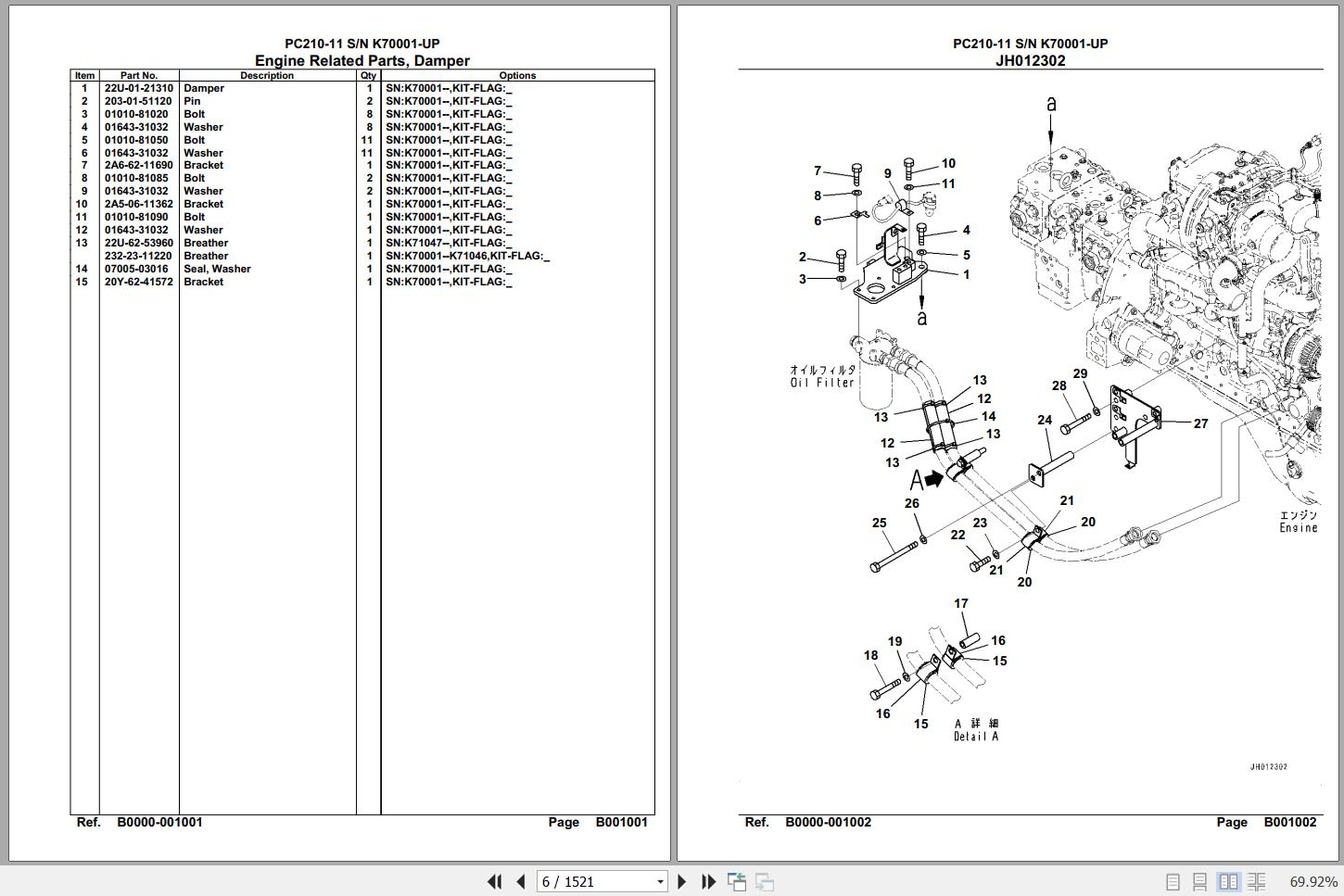 Komatsu PC210-11 K70001 Up Spare Parts Catalog