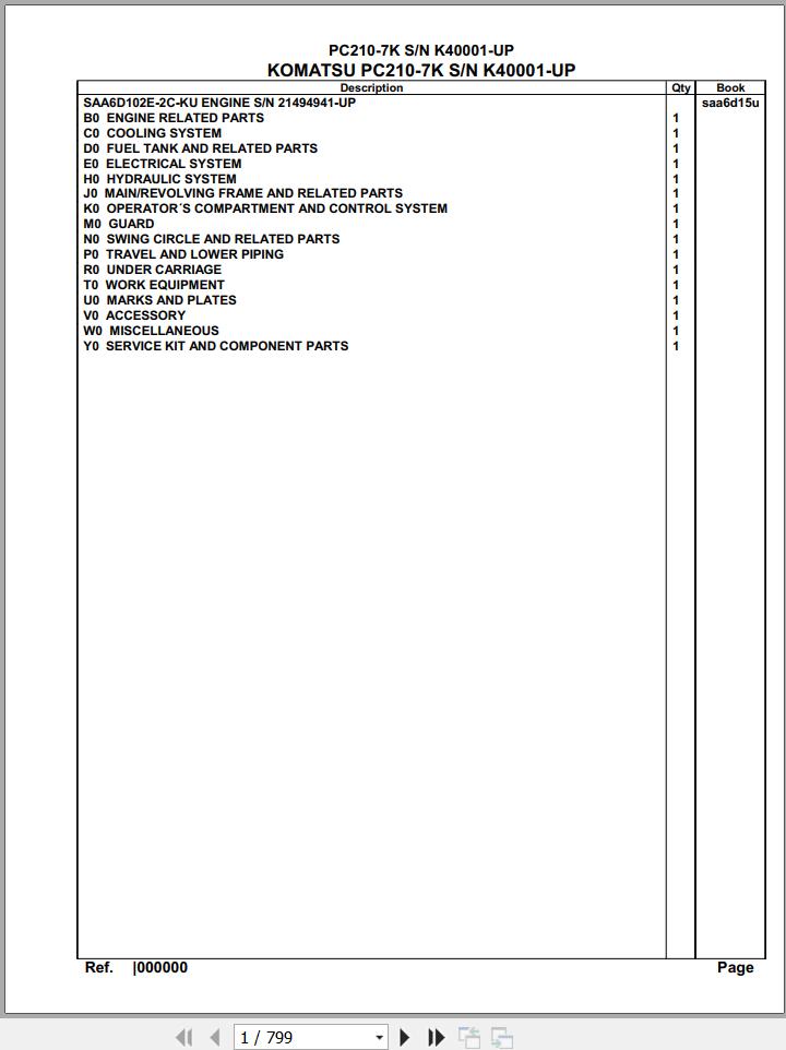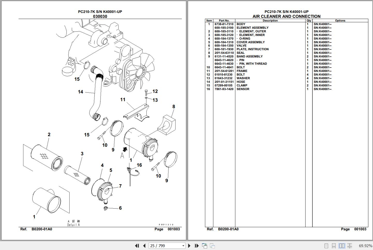 Komatsu PC210-7K K40001 Up Spare Parts Catalog