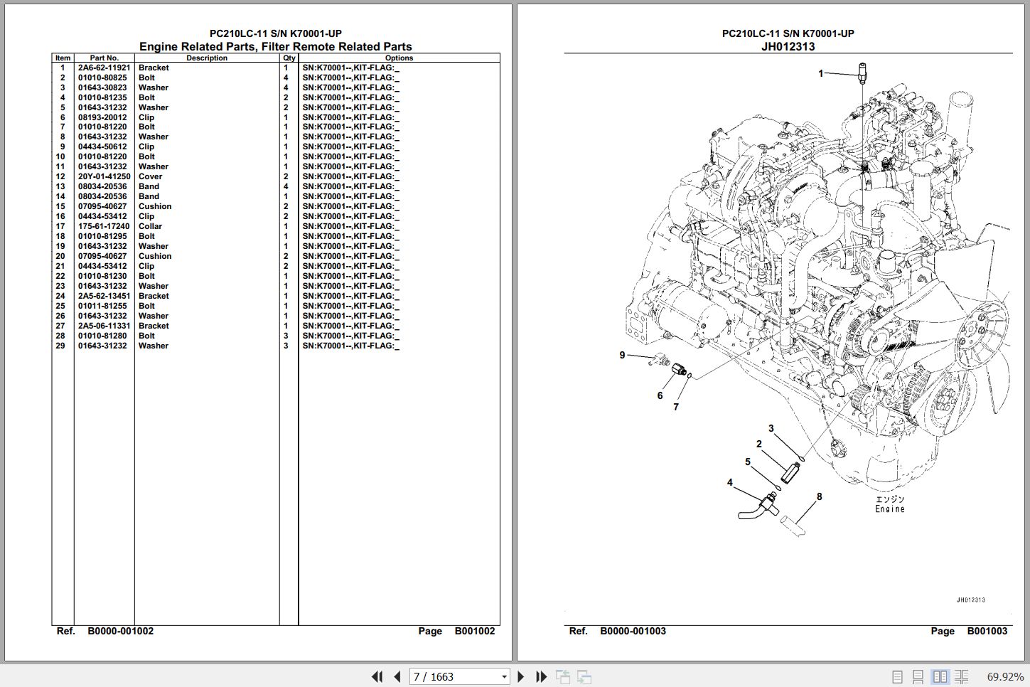 Komatsu PC210LC-11 K70001 Up Spare Parts Catalog