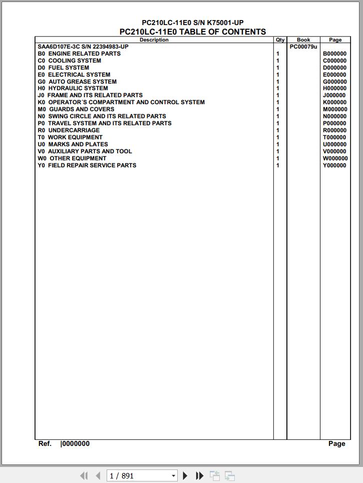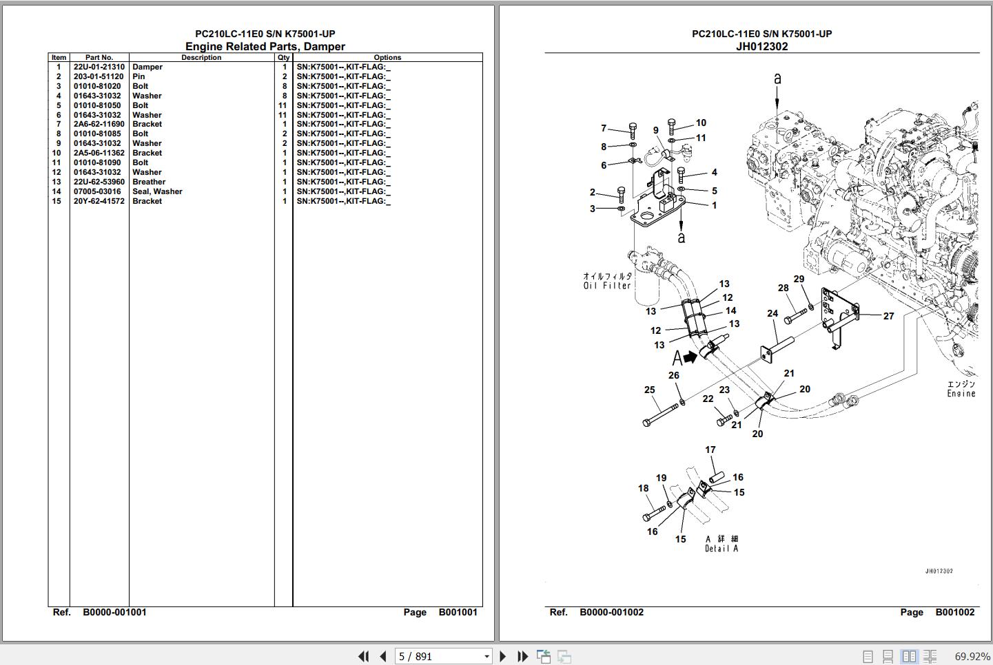 Komatsu PC210LC-11E0 K75001 Up Spare Parts Catalog