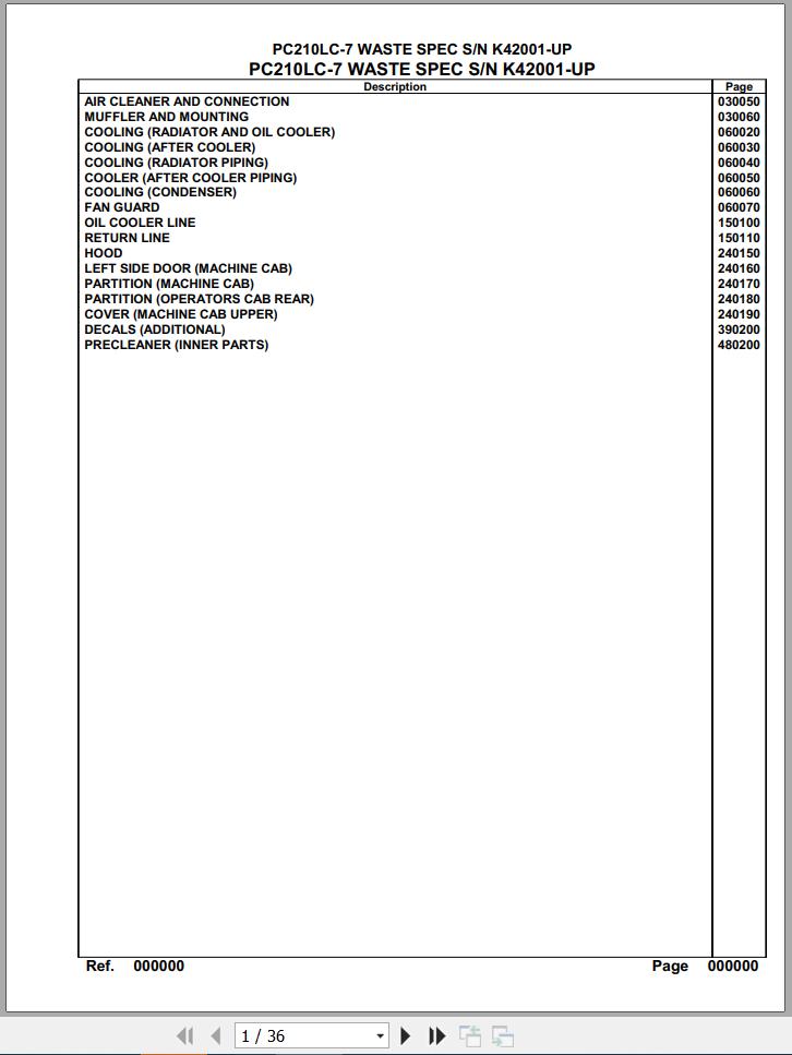 The Bookmarks of Komatsu PC210LC-7 Waste Spec K42001 Up Spare Parts Catalog: