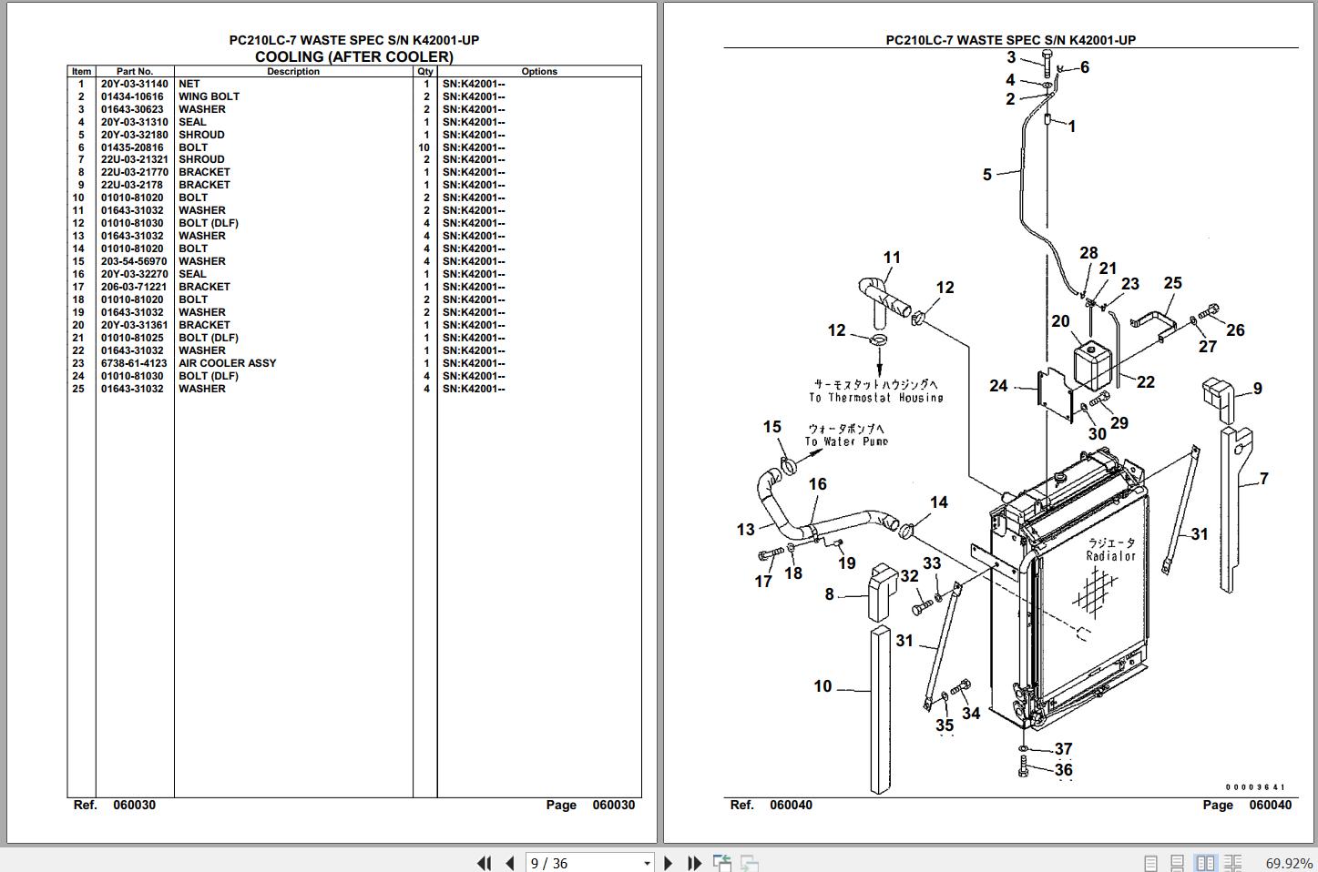 Komatsu PC210LC-7 Waste Spec K42001 Up Spare Parts Catalog