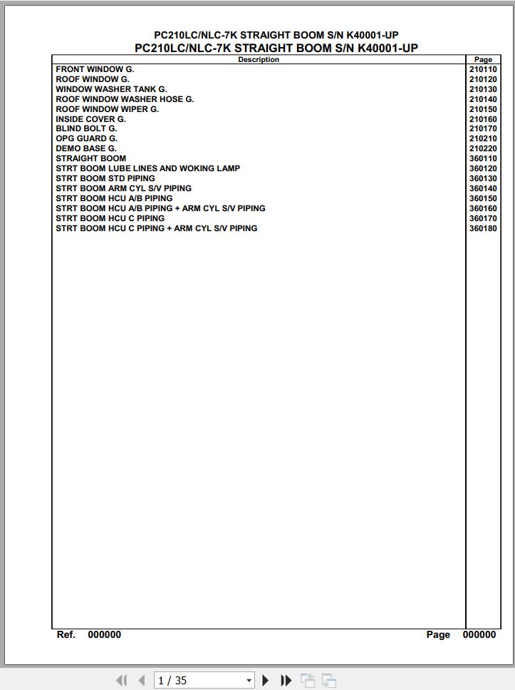 The Bookmarks of Komatsu PC210LC 210NLC-7K Straight Boom K40001 Up Spare Parts Catalog: