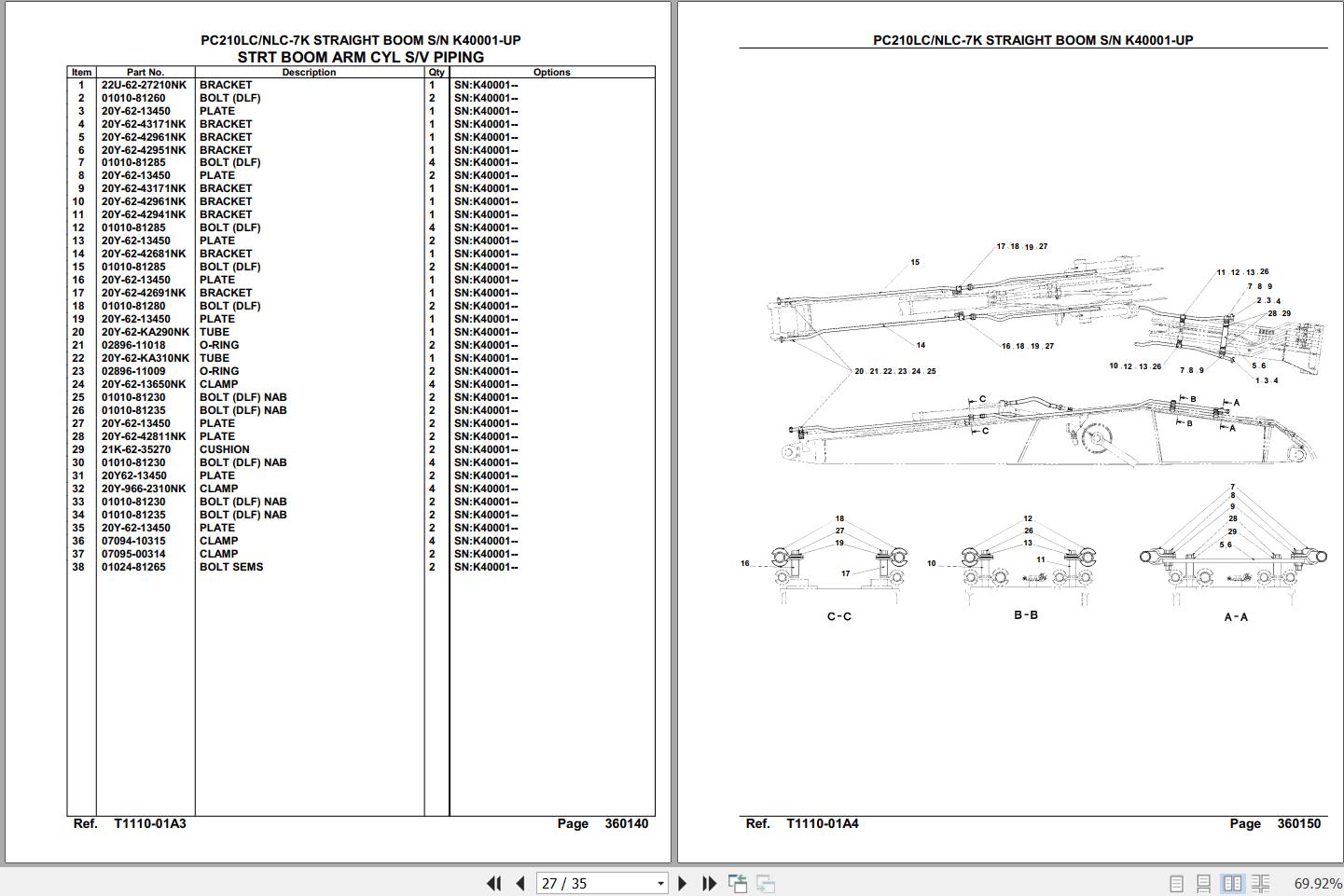 Komatsu PC210LC-7K PC10NLC-7K Straight Boom K40001 Up Spare Parts Catalog