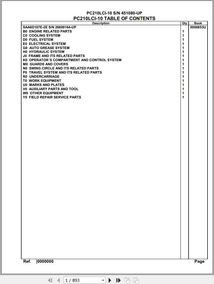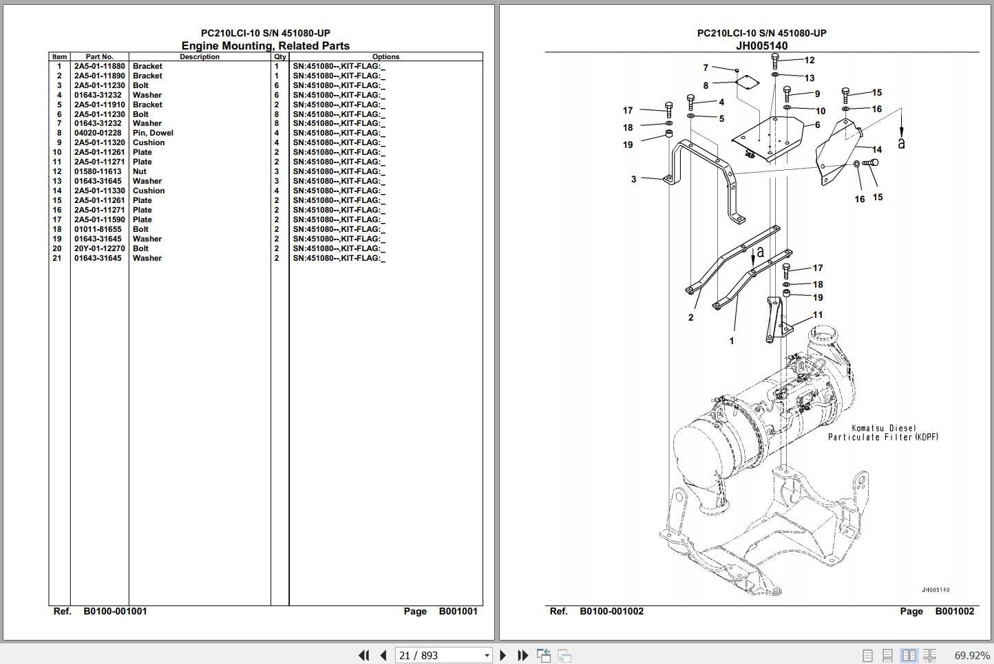 Komatsu PC210LCI-10 451080 Up Spare Parts Catalog