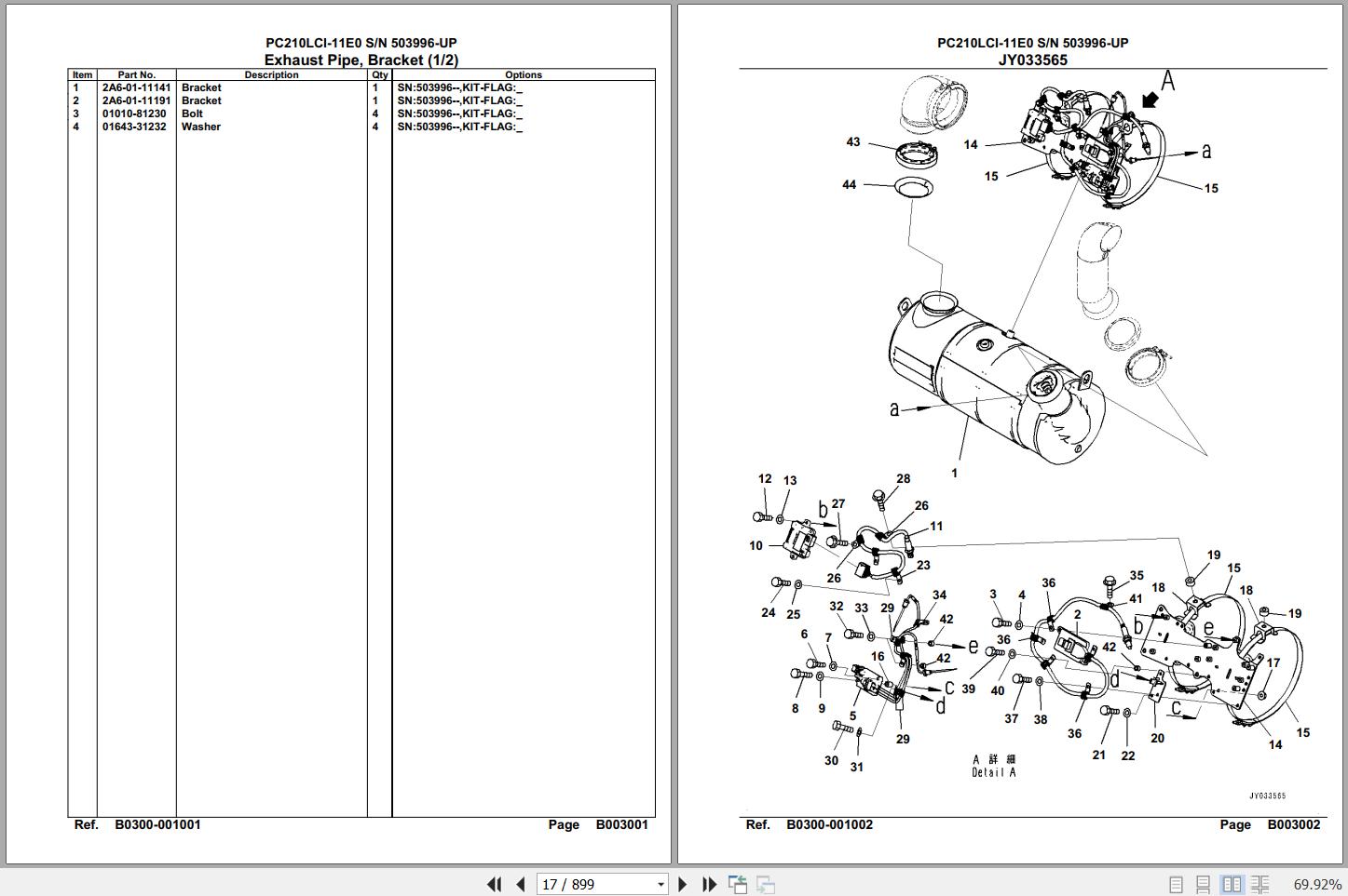 Komatsu PC210LCI-11E0 503996 Up Spare Parts Catalog