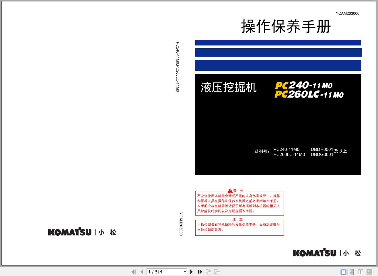 Komatsu PC240-11M0 PC260LC-11M0 DBDF0001-UP Operators Manual YCAM203000