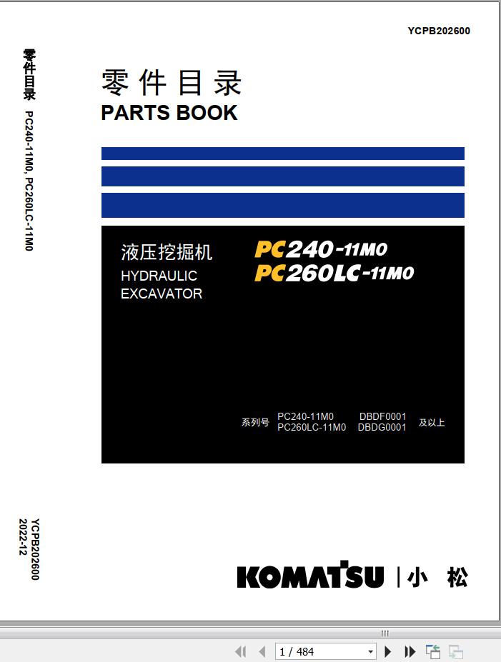 Komatsu PC240-11M0 PC260LC-11M0 Parts Book YCPB202600