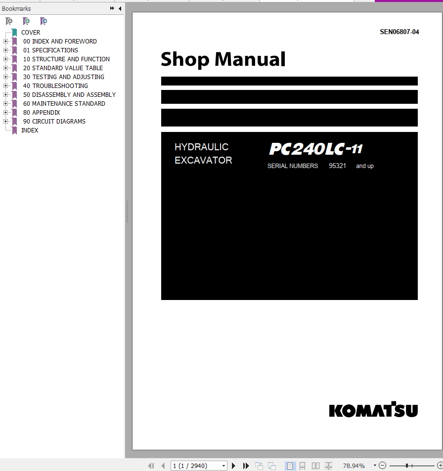 The Bookmarks of Komatsu PC240LC-11 Hydraulic Excavator Operation & Maintenance Manual: