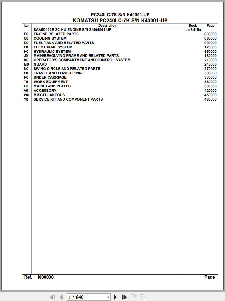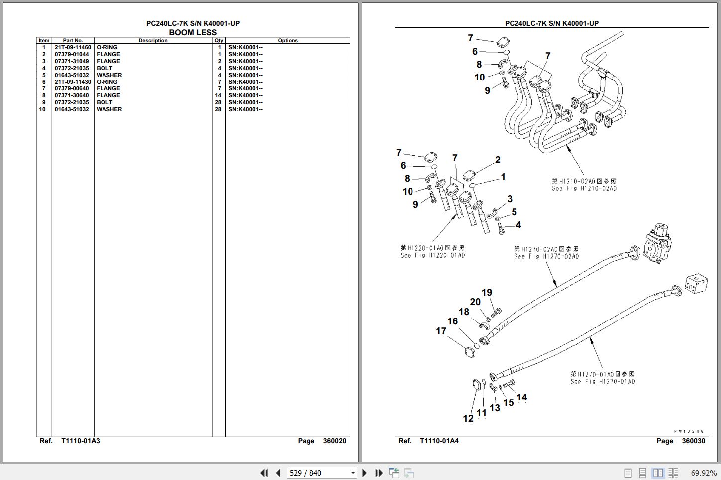 Komatsu PC240LC-7K K40001 Up Spare Parts Catalog