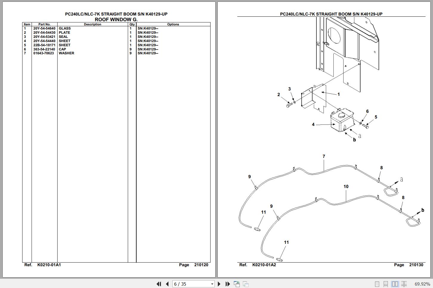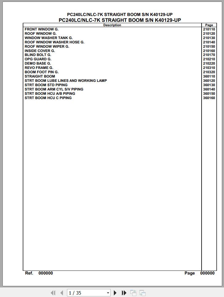 The Bookmarks of Komatsu PC240LC-7K PC240NLC-7K Straight Boom K40129 Up Spare Parts Catalog: