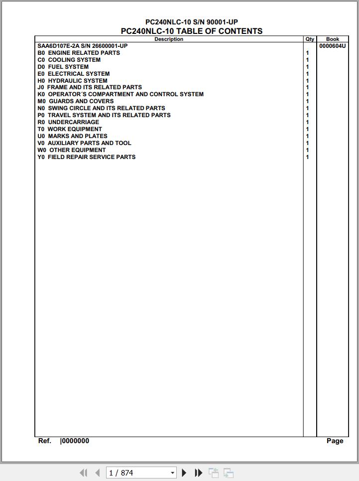 Komatsu PC240NLC-10 90001 Up Spare Parts Catalog