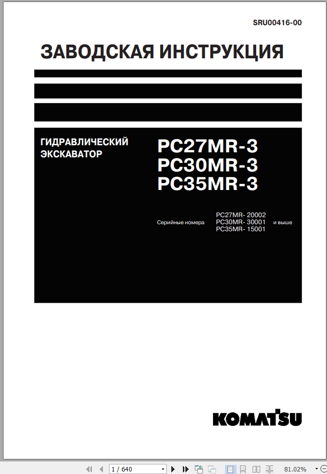 Komatsu PC27MR-3 PC30MR-3 PC35MR-3 Shop Manual SRU00416-11
