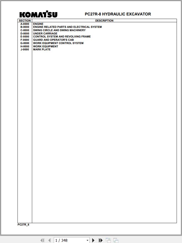Komatsu PC27R-8 F30001 Up Spare Parts Catalog