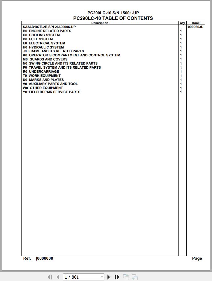 The Bookmarks of Komatsu PC290LC-10 15001 Up Spare Parts Catalog: