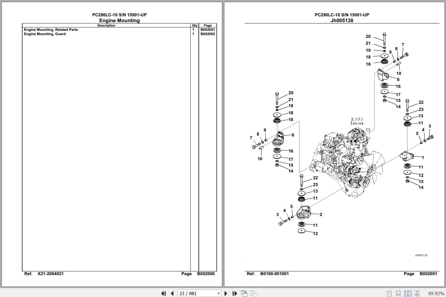 Komatsu PC290LC-10 15001 Up Spare Parts Catalog