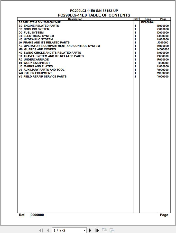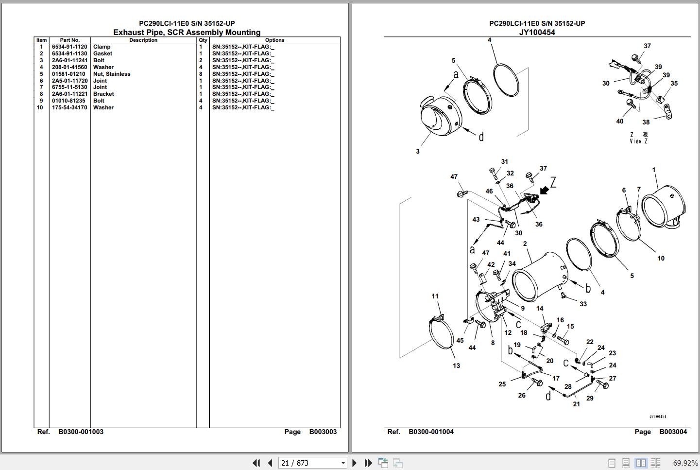 Komatsu PC290LCI-11E0 35152 Up Spare Parts Catalog