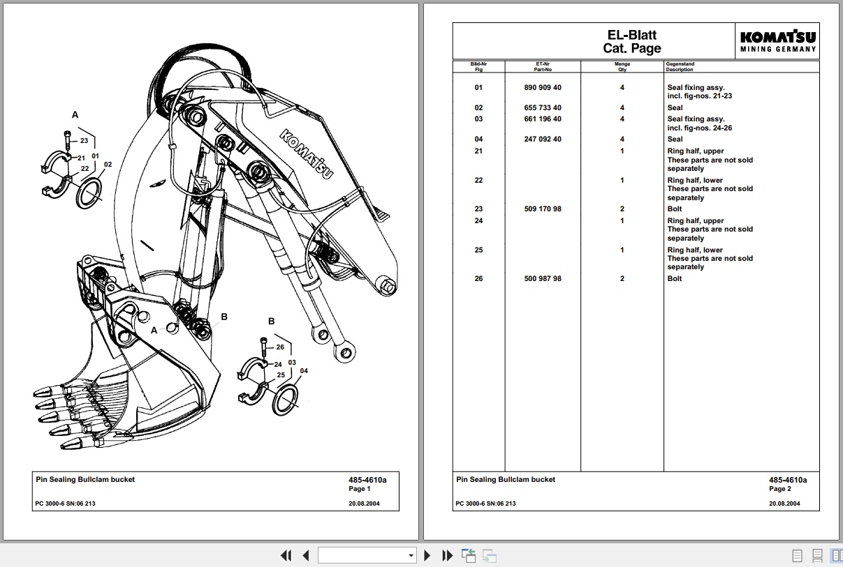 The Bookmarks of Komatsu PC3000-6 06213 Spare Parts Catalog: