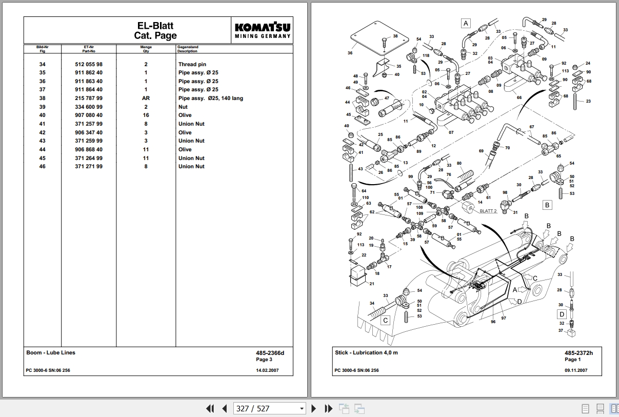 The Bookmarks of Komatsu PC3000-6 06256 Spare Parts Catalog: