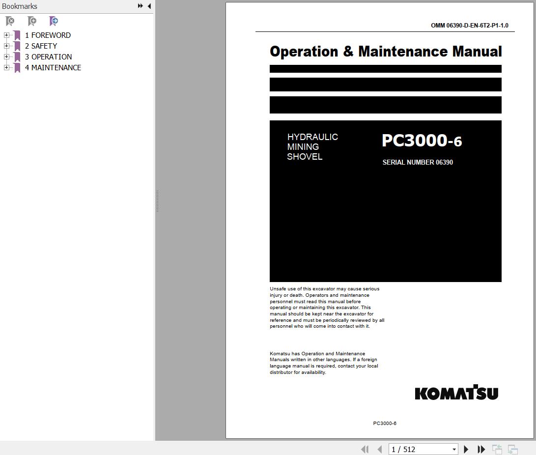 Komatsu PC3000-6 Operation & Maintenance Manual OMM 06390-D-GB-6T2-P1-1.0